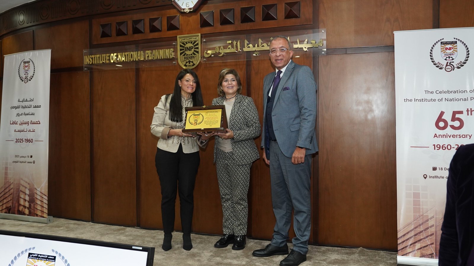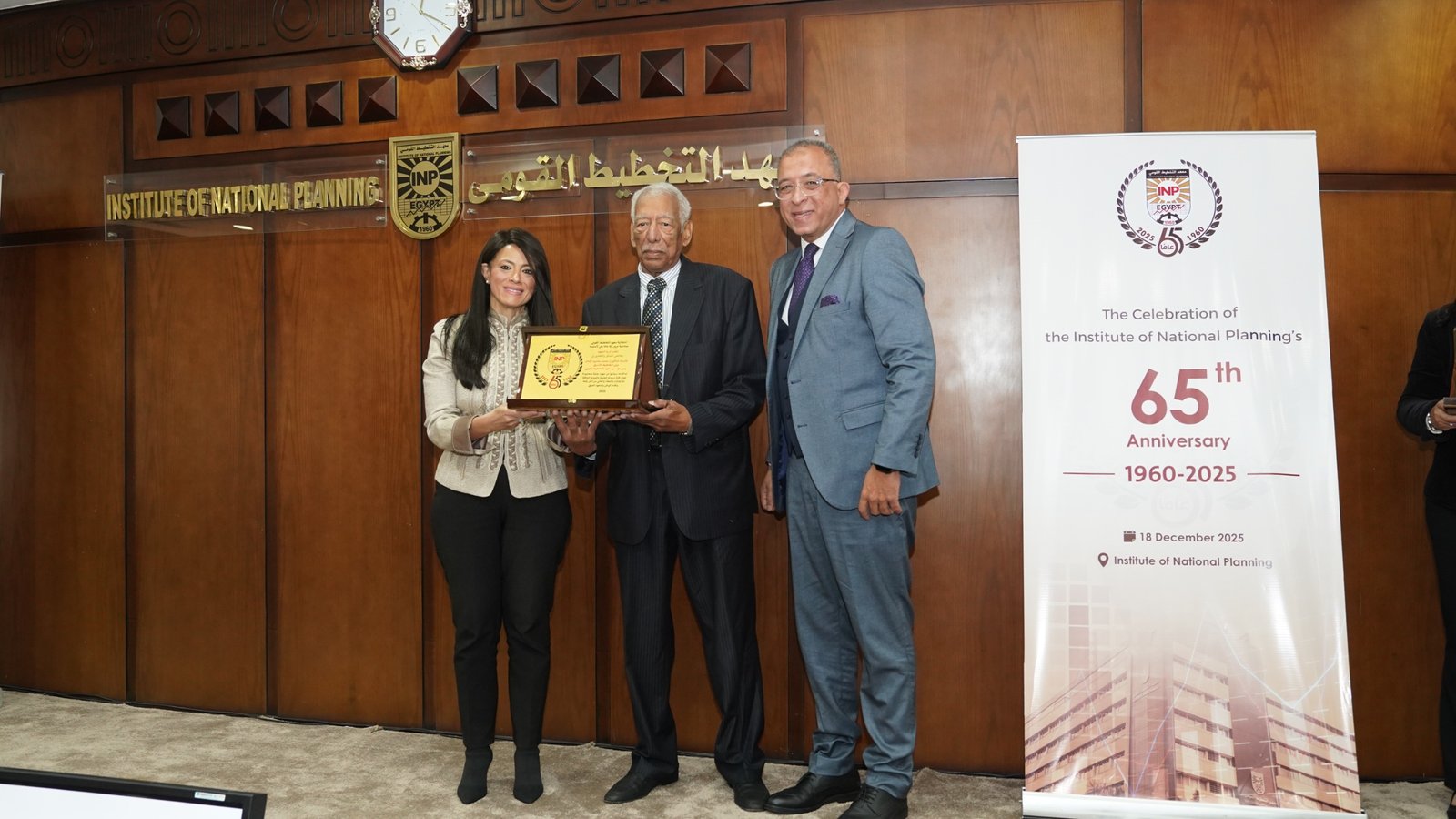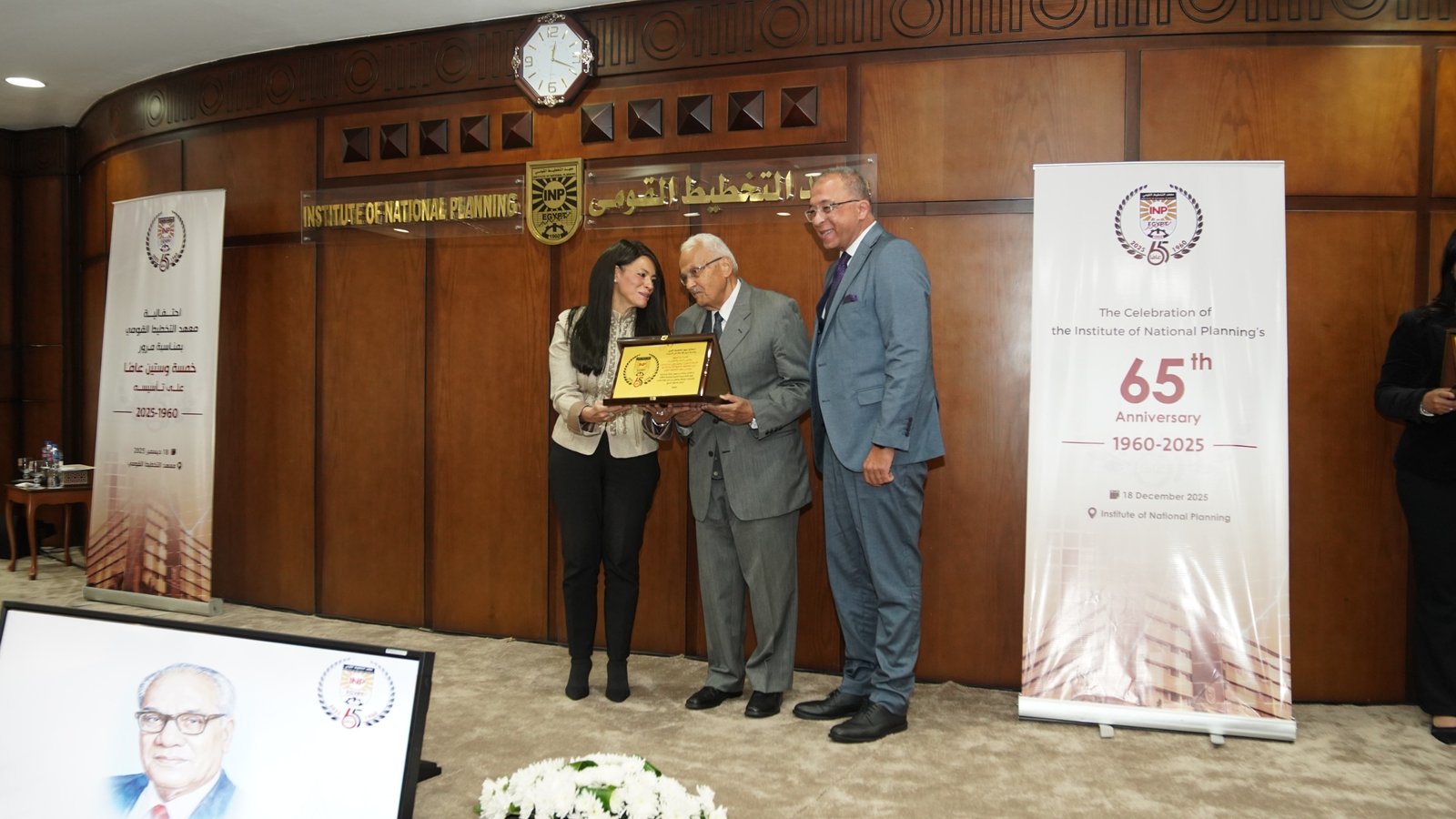 في إطار احتفالية معهد التخطيط القومي بمرور 65 عامًا على تأسيسه، كرمت الدكتورة رانيا المشاط وزيرة التخطيط والتنمية الاقتصادية والتعاون الدولي، ورئيس مجلس إدارة المعهد، والدكتور أشرف العربي رئيس معهد التخطيط القومي، رواد المعهد ورؤسائه السابقين، إلى جانب أقدم الأساتذة التحاقًا بأسرة المعهد منذ عام 1962، حيث تم تكريم عدد من الرموز والقامات التي كان لها أثر بالغ في مسيرة المعهد على مدار عقود تقديرًا لإسهاماتهم العلمية والمهنية ودورهم المحوري في بناء وتطوير مسيرة التخطيط في مصر.