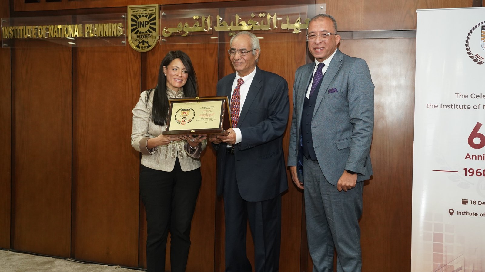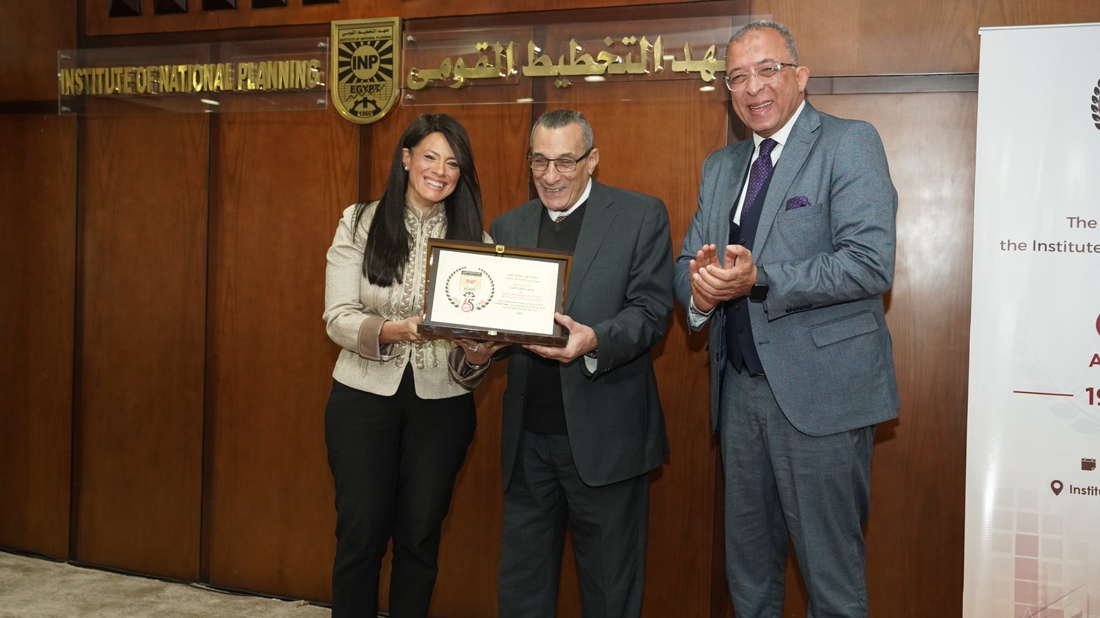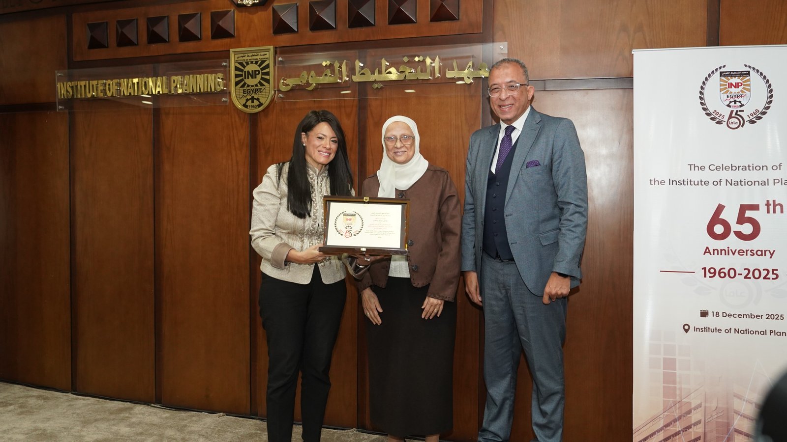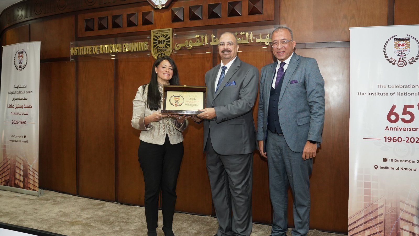 في إطار احتفالية معهد التخطيط القومي بمرور 65 عامًا على تأسيسه، كرمت الدكتورة رانيا المشاط وزيرة التخطيط والتنمية الاقتصادية والتعاون الدولي، ورئيس مجلس إدارة المعهد، والدكتور أشرف العربي رئيس معهد التخطيط القومي، رواد المعهد ورؤسائه السابقين، إلى جانب أقدم الأساتذة التحاقًا بأسرة المعهد منذ عام 1962، حيث تم تكريم عدد من الرموز والقامات التي كان لها أثر بالغ في مسيرة المعهد على مدار عقود تقديرًا لإسهاماتهم العلمية والمهنية ودورهم المحوري في بناء وتطوير مسيرة التخطيط في مصر.