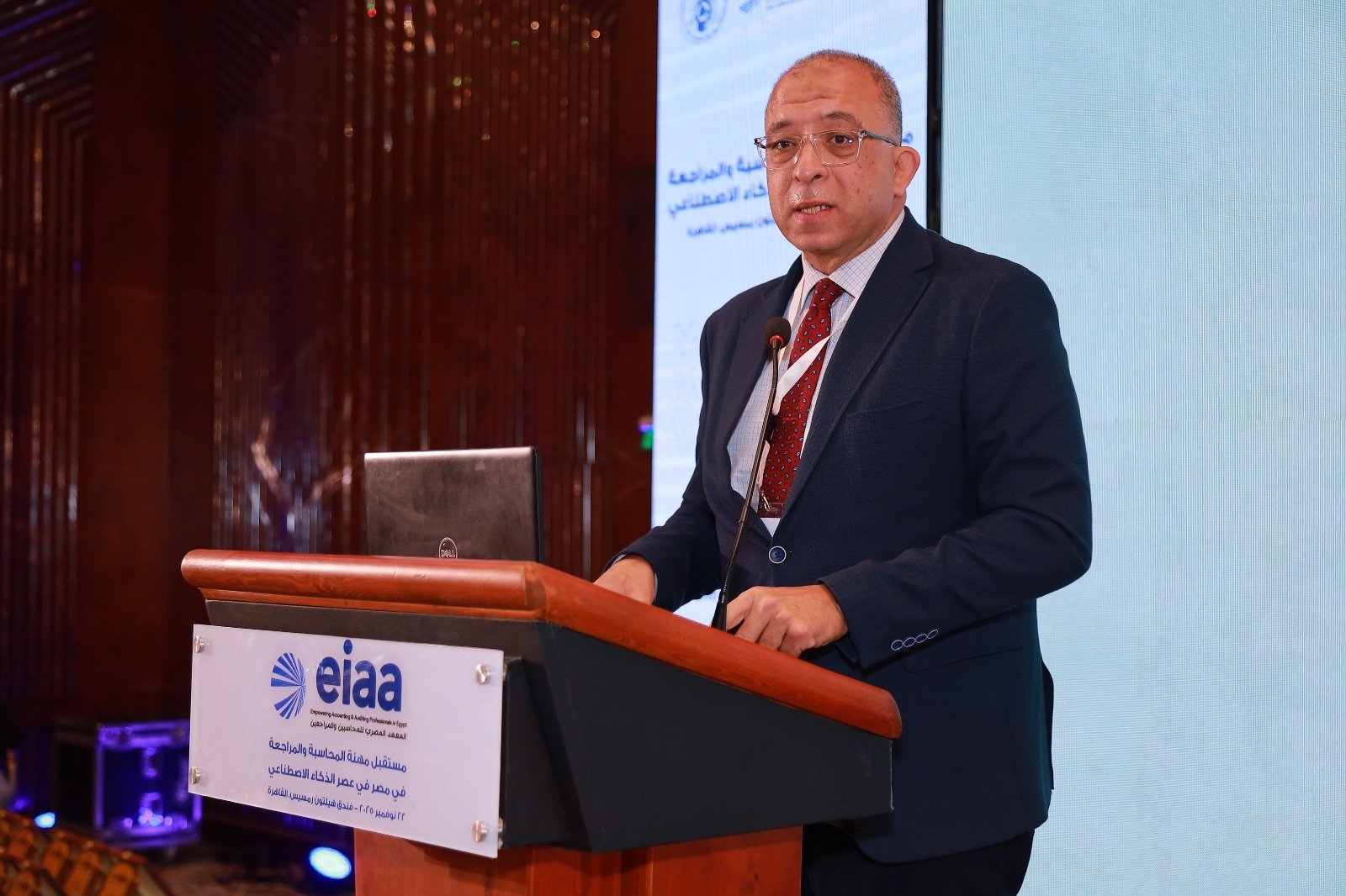 وخلال كلمته، قدم الدكتور أشرف العربي تحليلاً معمقاً لتأثير الذكاء الاصطناعي على المهن المختلفة، حيث قدم رؤية مستندة إلى أحدث البيانات والتقارير الدولية، لا سيما “تقرير التنمية العربية – الإصدار التاسع” الذي أطلقه معهد التخطيط القومي بالتعاون مع المعهد العربي للتخطيط والجمعية العربية للبحوث الاقتصادية والمعهد التونسي للقدرة التنافسية والدراسات الكمية، مؤكدًا على أن الذكاء الاصطناعي يُعيد تشكيل المهن ولا يلغيها، ومستنداً إلى بعض المؤشرات الرئيسية مثل مؤشر التعرض الصناعي للذكاء الاصطناعي والذي أظهر أن القطاعات الخدمية كالأنشطة المالية والمهنية هي الأكثر تأثراً. هذا بالإضافة لمؤشر التعرض المهني للذكاء الاصطناعي والذي يشير إلى أن المهن الأعلى تعرضاً تشمل المتخصصين في الأعمال والإدارة، مؤكداً أن المحاسبة التقليدية تقع ضمن هذه الفئة.