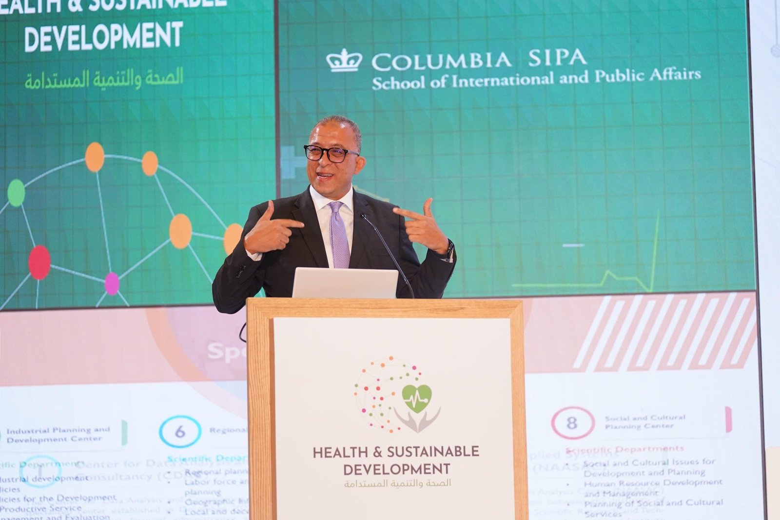وفي هذا الإطار أكد الدكتور أشرف العربي رئيس المعهد خلال جلسته الختامية أن الصحة تعد الركيزةً الأساسيةً للتنمية المستدامة وتؤثرعلى مختلف جوانبها بشكلٍ مباشر وغير مباشر، وأن صحة الفرد والمجتمع تنعكس على معدلات الفقر، والجوع، ونوعية التعليم، والنمو الاقتصادي، واللامساواة، والتغير المناخي، مشيراً إلى أن تحقيق التنمية الصحية يتطلب نهجًا شاملًا يتعاون فيه مختلف الشركاء، بما في ذلك الحكومات والمنظمات الدولية والقطاع الخاص والمجتمع المدني.