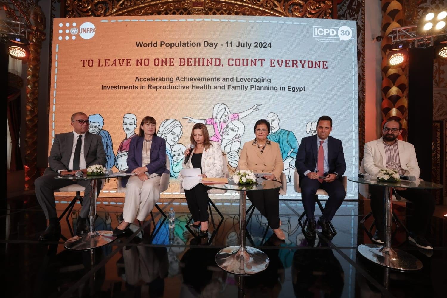 أدارت الجلسة السيدة جيرمان حداد، القــائم بأعمال ممثل صندوق الأمم المتحــدة للسكان وقد حضـر الجلسة كل من دكتورة عبلة الألفي، نائب وزير الصحة لشؤون السكان ، بمشاركة السيدة إلينا بانوفا، المنسق المقيم للأمم المتحدة في مصر والسيد اليكس سيجورا، الممثل المقيم لصندوق النقد الدولي في مصر ،ودكتور أحمد صيام، نائب المدير التنفيذي لهيئة لتأمين الصحي الشامل.