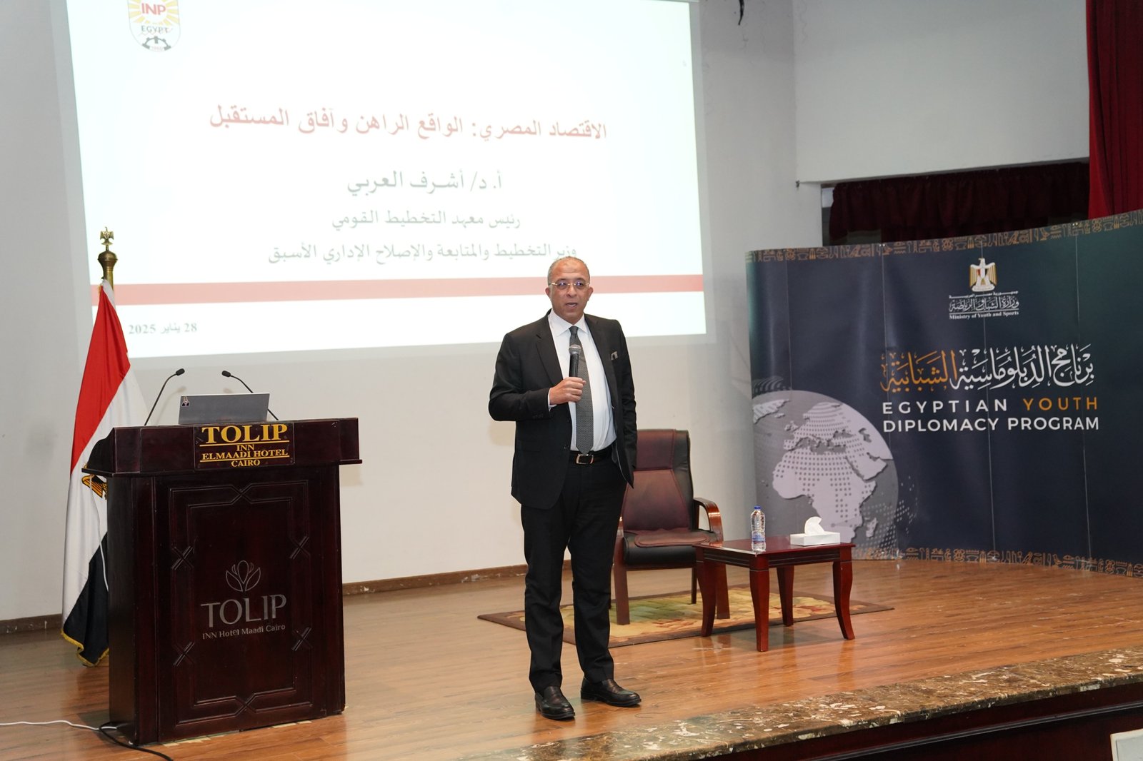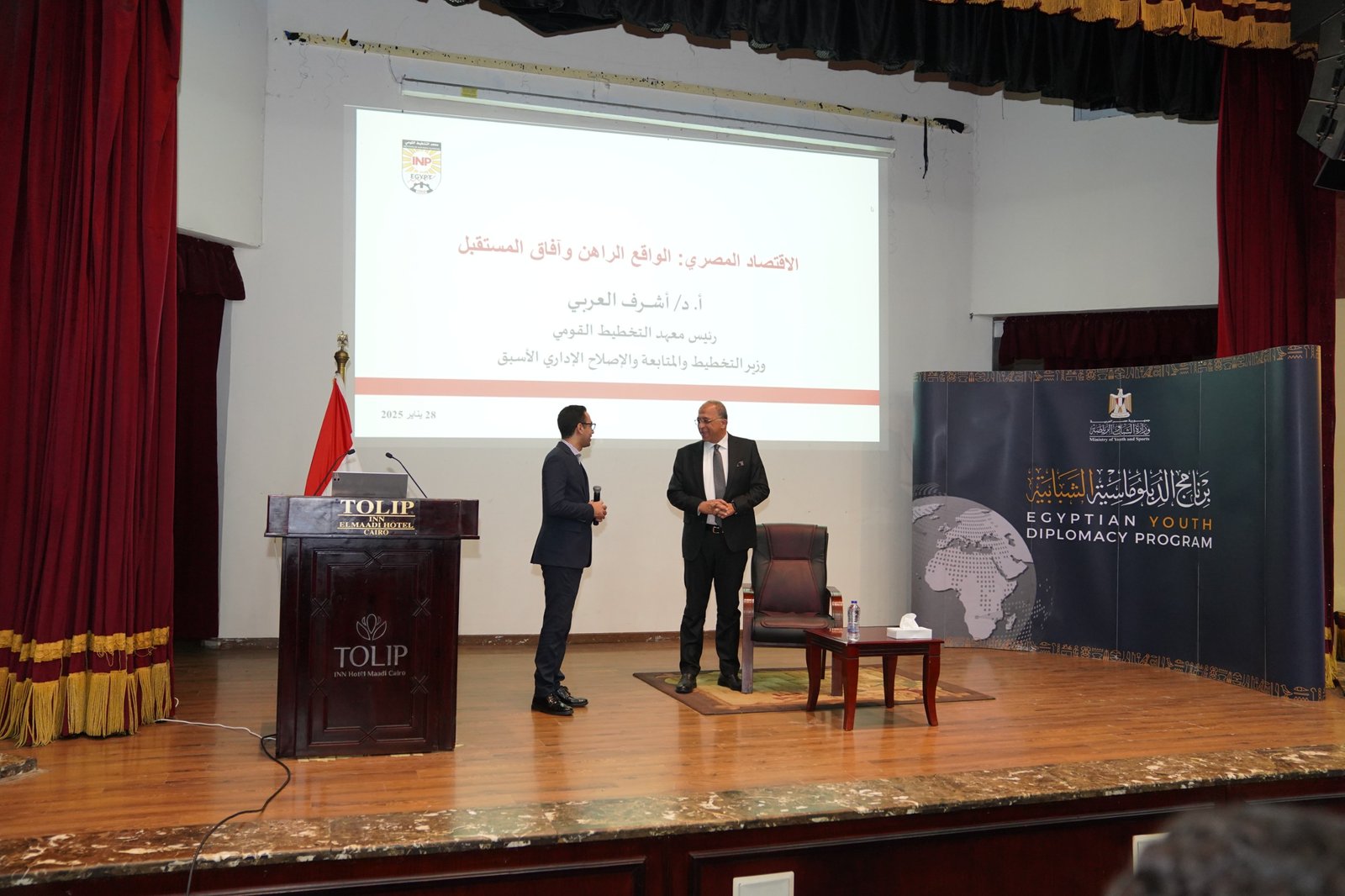 في إطار دعم مشاركة الشباب المصري في المحافل الدولية وتنفيذًا للاستراتيجية الوطنية للشباب والرياضة، وبدعوة من الأستاذ الدكتور أشرف صبحي، وزير الشباب والرياضة، ألقى الأستاذ الدكتور أشرف العربي، رئيس معهد التخطيط القومي، محاضرة لمجموعة من الشباب المشاركين في النسخة الثالثة من برنامج الدبلوماسية الشبابية، والذي تنفذه وزارة الشباب والرياضة.
