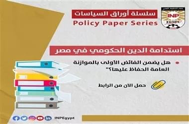 اطّلع على أحدث اصدارات معهد التخطيط القومي من سلسلة ورقة السياسات، بعنوان “استدامة الدين الحكومي في مصر: هل يضمن الفائض الأولى بالموازنة العامة الحفاظ عليها؟” admin2023-05-26T23:50:43+03:00 تستهدف الورقة طرح عدد من الإجراءات اللازمة للحفاظ على استدامة الدين الحكومي وتخفيضه إلى المستوى المنشود. وتأ... 15 أبريل 2023التصنيف الرئيسىComments OffRead more...