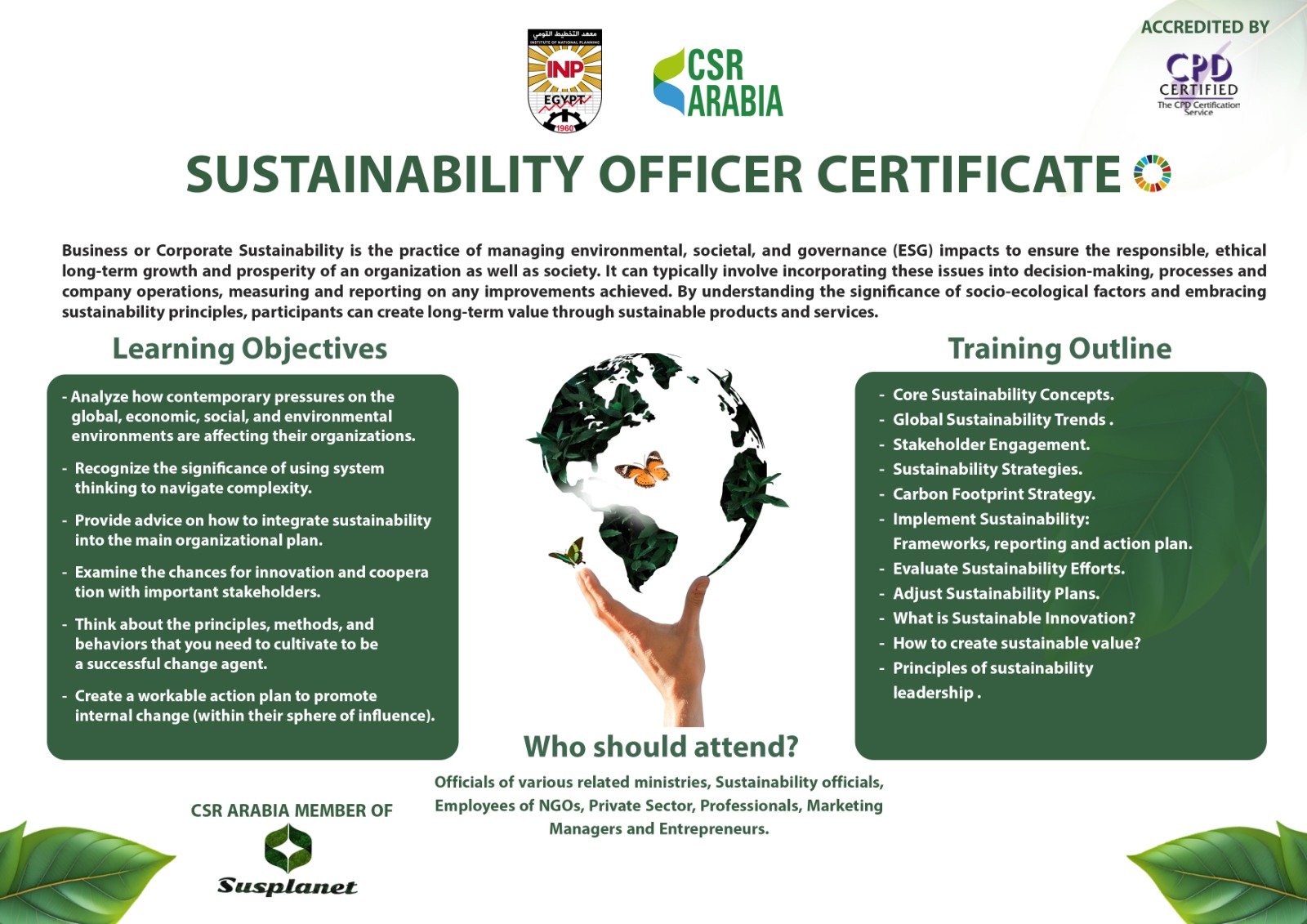 The Institute of National Planning (INP) is thrilled to announce the first round of, “Sustainability Officer Certificate”. If you wish to know more about sustainability, you will not want to miss this essential certificate.