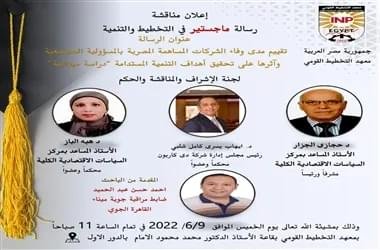 مناقشة رسالة ماجستير admin2023-08-28T07:48:08+03:00 للباحث : أشرف أحمد حسن 08 يونيو 2022السياسات الاقتصاديه الكليه, المراكز العلميةRead more...